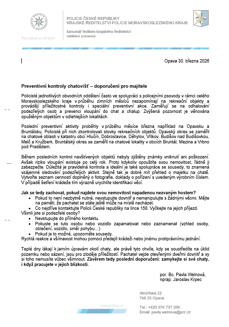 Preventivní kontroly chatových oblastí - doporučení pro majitele